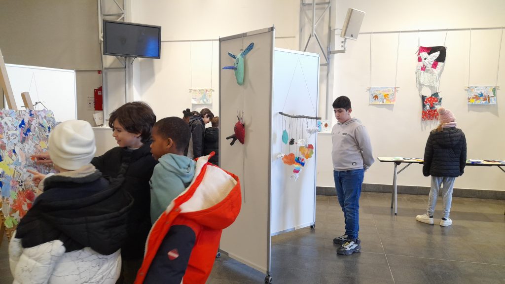 5 classes, 3 niveaux, mais un objectif commun : créer une exposition collective d’œuvres planes ou en volumes, à pendre, à afficher, à projeter, à sentir, à diffuser… En un temps record, les élèves ont :